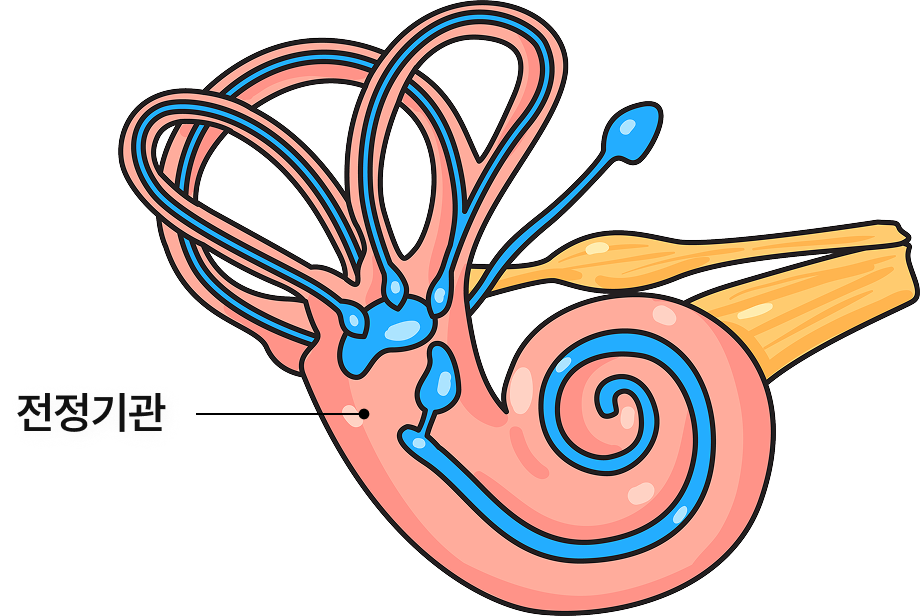 한쪽 평형 정보가 소실되면 양측 균형 정보에 불균형이 발생하여 강한 어지럼과 중심 상실 증상이 나타납니다.