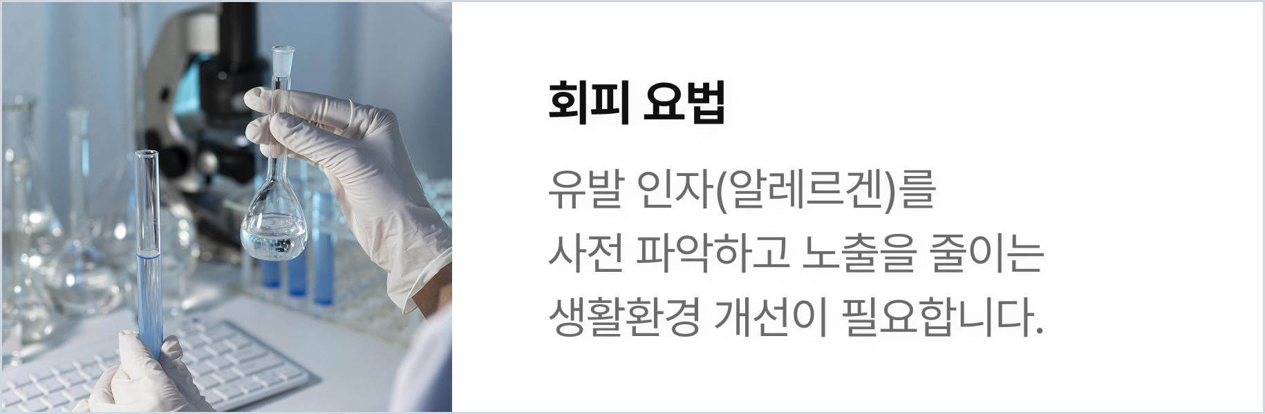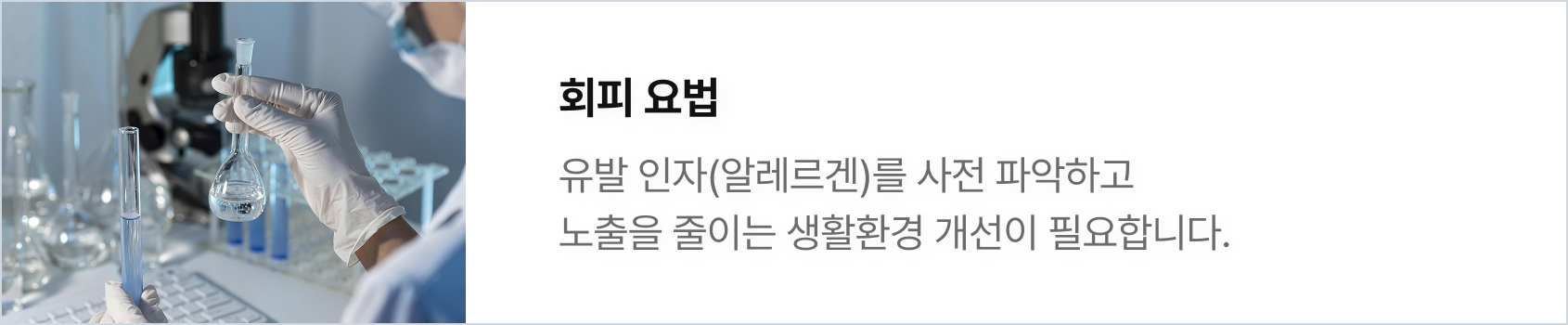 알레르기의 원인을 정밀하게 분석하고 피해야 할 환경을 찾아내는 것이 핵심입니다.